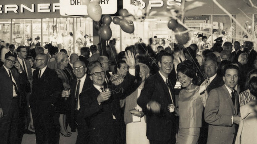 Fashion Island plays an integral role in Orange County history, dating back to 1953, when the Irvine Ranch hosted the famous National Boy Scout Jamboree on its grounds. After a year of construction, Fashion Island opened on Sept. 9, 1967 with a charity event attended by 18,000 people. At the time, the open-air shopping center clocked in at 909,000 square feet with four department stores: Buffums, The Broadway, Robinson’s, and Penneys (now known as J.C. Penney), as well as 52 specialty stores and two restaurants: Bob Burns and the Velvet Turtle.